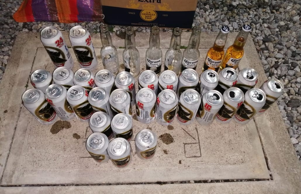 Quienes se conducían a  bordo del vehículo  automóvil P-108FYM, color azul, al ser identificados se encontraban olorosos a licor, en el interior del vehículo se localizaron 30 latas de cerveza y 17 botellas de cerveza, además estas personas violentaban el Toque de Queda.